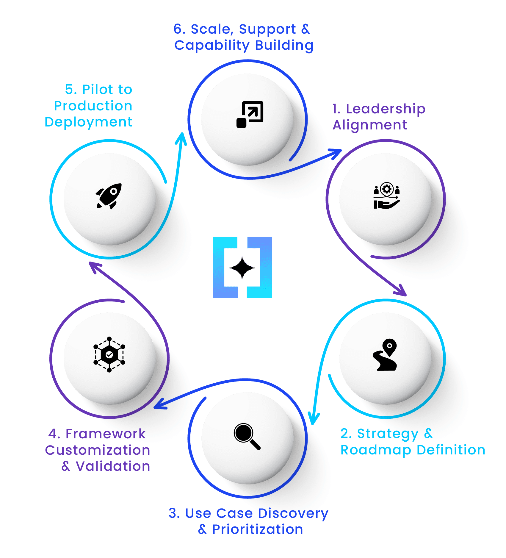 We streamline the AI adoption journey with a clear, four-step engagement model, designed to ensure alignment, speed, and measurable outcomes.